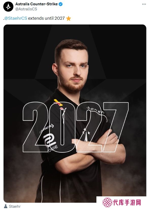 Astralis在社交媒体官宣与Staehr完成续约,这位丹麦选手将在队伍效力至2027年。