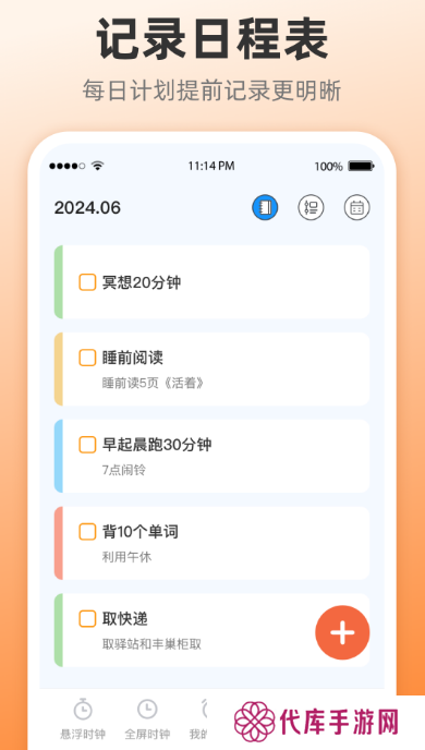 悬浮提醒时钟,秒杀提醒多种提醒皮肤可以任由选择,而且不需要开通会员就能够免费使用,另外也有闹钟提醒,每件重要的事情都可以定制闹钟当做提醒。如果日常生活当中有很多繁忙的事情,不妨选择记录日程表,记录重要的事情并每天坚持打卡,让你足够自律。