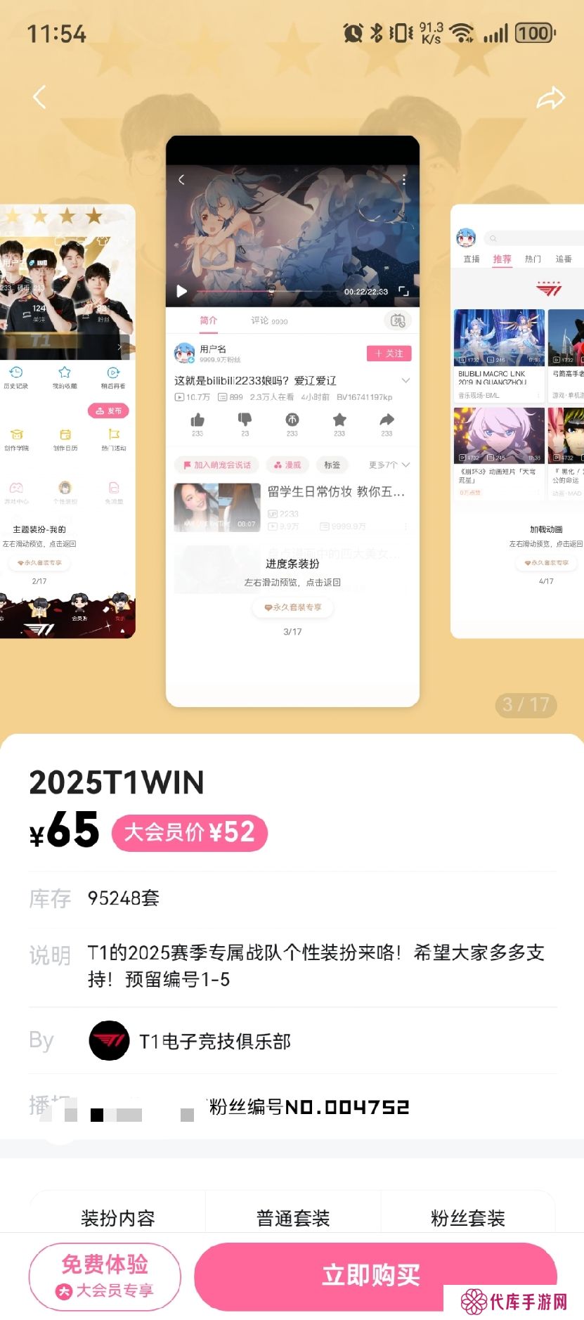 近日,T1在B站上发布了2025赛季专属战队的个性装扮,当前售价65元,而在有B站大会元的前提下,售价为52元。