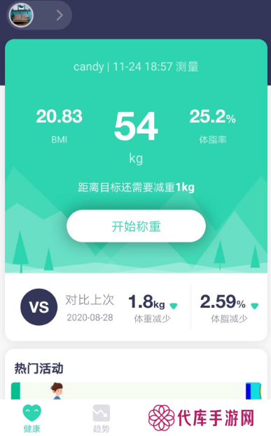 比较热门的智能健康监测专家,可连接不同的电子设备,比如常见的体脂秤,运动手环,小米手表等等,可快速监测你的身体健康状态,包括体脂率,体重脂肪率。根据所有数据相关显示,推送出非常专业的健身减肥建议。想要合理控制自己的体重,可按照其中的饮食计划去执行,还能在社区当中打卡分享你的减脂美食与运动心得。