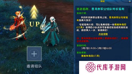 机关启封,全民狂欢!新服上线即送20000金券,兑换海量珍稀道具;额外解锁金券礼包可获三档宝石、道具等超值资源,收集“墨”“鸢”“降”“世”四字卡片,可兑换兑换各式稀有奖励!包含墨鸢尊享礼包、墨鸢庆典礼包,以及时装坐骑等稀有奖励,打造专属墨家传人形象!与新职业墨鸢组队即可获得经验加成+5%、全属性+20。赶紧组上你的新职业好友一起驰骋新区吧!