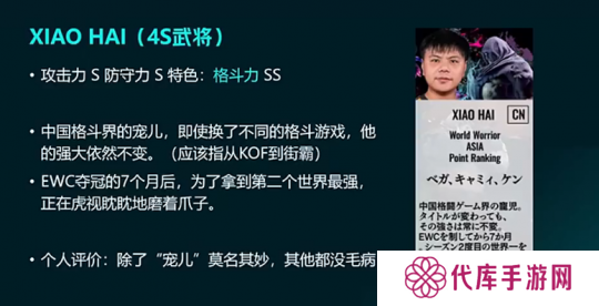 值得一提的是,在赛事预热前,卡普空官方还发布了一份选手评级图。“小孩”曾卓君的攻击力和防守力都是最高的S级。由于本次比赛,采用的是6进2的分组强度比较大,竞争将会更为激烈。