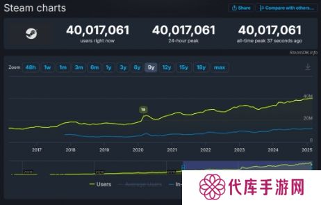 受《怪物猎人:荒野》驱动,Steam首次同时在线峰值超过了4000万,创历史新高,当前在线大约1260万人。