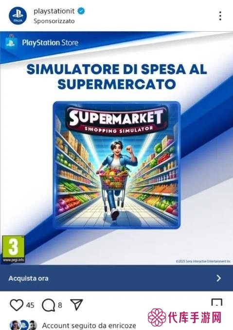 PlayStation意大利官方Instagram页面发布了一则动态,宣传一款名为《超市购物模拟器》的游戏。正如你所见,图片中不管是人物动作还是画风,都不禁让人怀疑这是AI生成的图片。