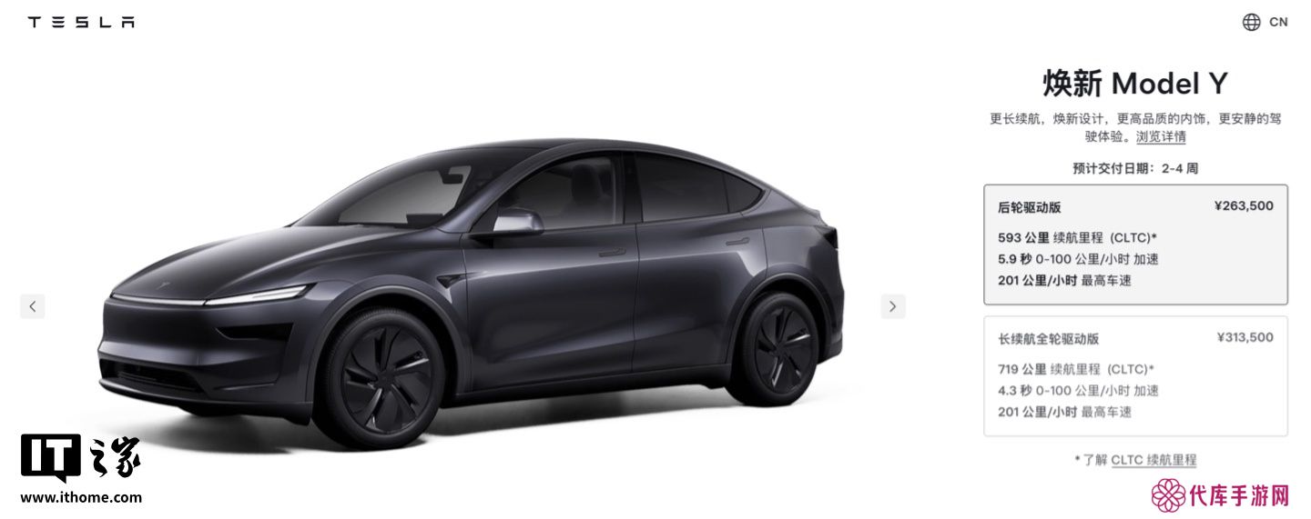 本站另参考特斯拉中国官网,目前焕新款 Model Y车型后轮驱动版显示预计交付时间为2-4周,长续航全轮驱动版预计交付时间为6-10周。