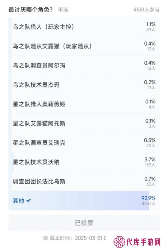 (投票列举了几乎所有主要角色,“其他”代指纳塔)