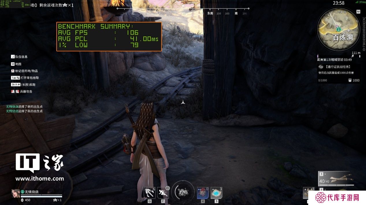 首先,RTX 5070 在 4K 分辨率 + 最高画质 + DLSS 质量模式下,游戏平均帧数为 106 帧,1% Low 帧 79 帧,平均延迟 41ms;