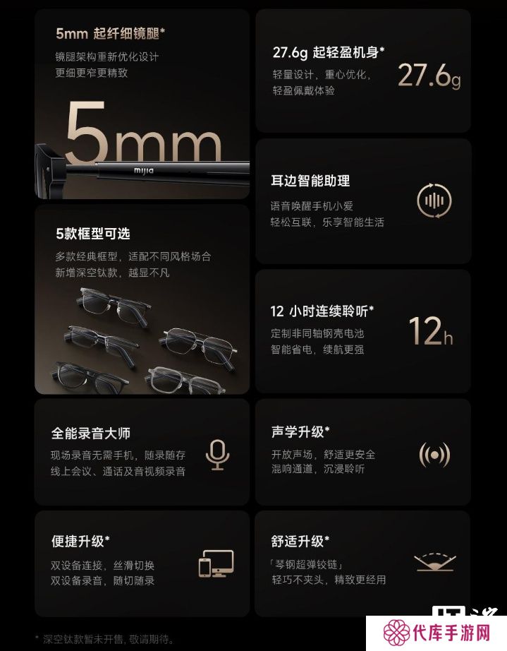 《小米 MIJIA 智能音频眼镜 2 开启众筹:12 小时续航、镜腿最细处约 5mm,999 元》