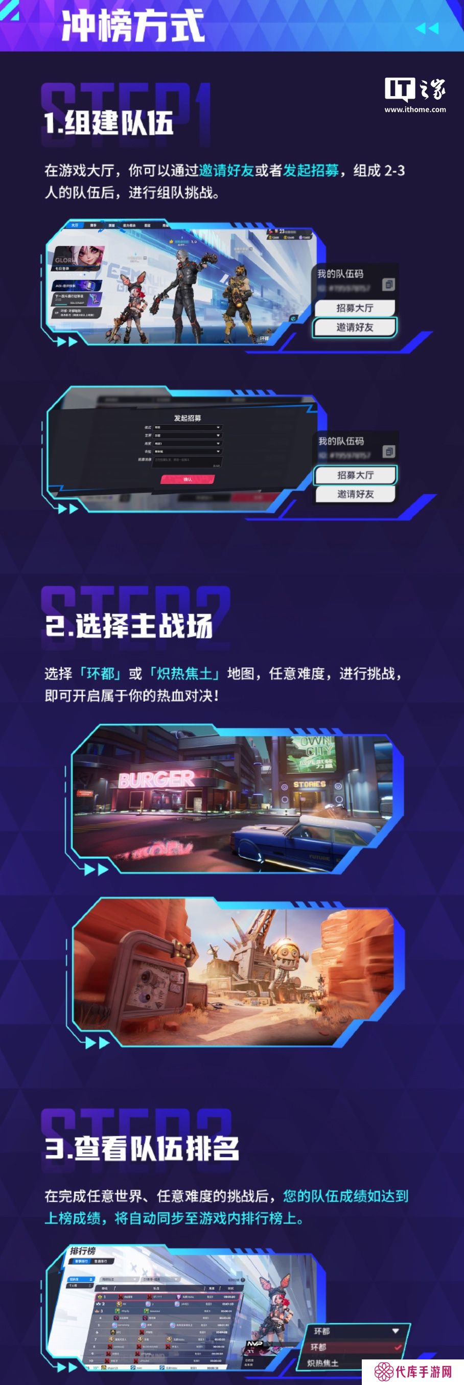 官方称,在相位测试期间,英雄们可组成 2-3 人的队伍进行组队挑战,活动结束后「环都」和「炽热焦土」地图排行榜前 3 名的队伍可获得不同金额的“现金奖励”。