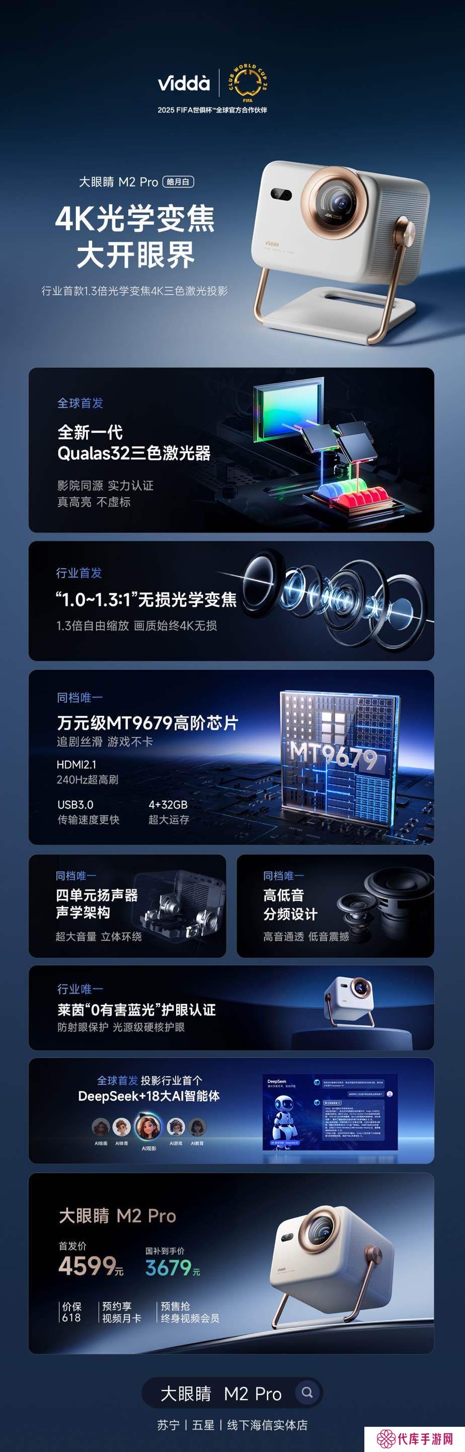 本站 3 月 14 日消息,Vidda 今日发布了大眼睛 M2 Pro 4K 三色激光投影仪新品,首发预售价 4599 元(本站注:国补到手价 3679 元)。