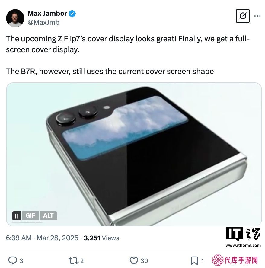 本站 3 月 28 日消息,综合消息源 Max Jambor 和 OnLeaks 爆料,三星Galaxy Flip7小折叠手机将采用“全面屏”风格外屏,整体风格类似联想的moto razr 50 Ultra手机,另有一款 Galaxy Z Flip FE 机型将延续目前Galaxy Flip6的“文件夹”风格外屏设计。
