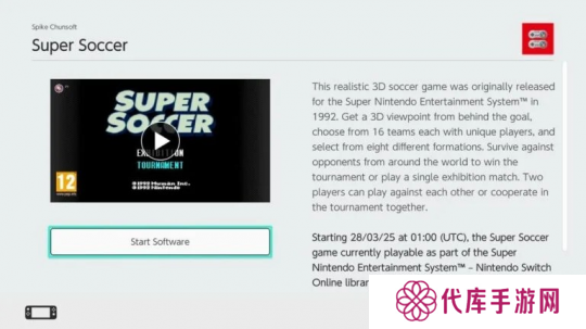 不过日本任天堂宣布,会员游戏库中一款名为《超统构足球》的足球游戏将在3月28日下架,这是任天堂首次从其NSO会员游戏库中下架作品。