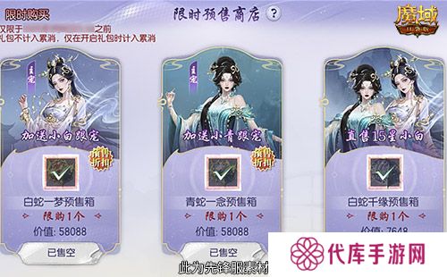 想要入手蛇年兽,千年素钻礼包是必买尊享包,它包含了2阶5段觉醒和2阶法诀,养成省一半资源,法诀养成首选,100%成功。而缘梦古匣仅需188魔石,88次保底必得小白/小青,超高性价比,适合前期养成法诀。