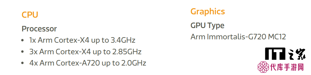 台积电 4nm,X4+A720 全大核架构:1*3.21GHz X4 + 3*3.01GHz A720 + 2*2.80GHz A720 + 2*2.02GHz A720