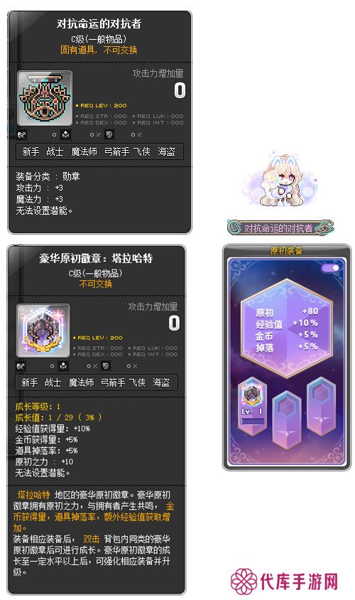 完成塔拉哈特的全部主线任务后,可以获得对抗命运的对抗者勋章豪华原初徽章:塔拉哈特豪华原初徽章可以增加金币获得量、道具掉落率和额外经验值获取效果。
