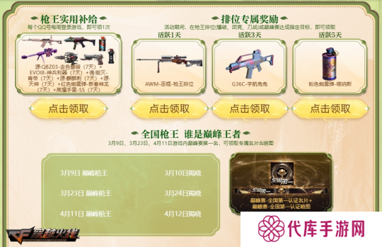 还有赏花季主题活动将在3月期间为各位CFer提供超多惊喜赠礼!进入活动页面即可免费领取魂·天龙-彼岸花(道具+资格),每日登录领积分兑换还可以兑换更多实用武器。