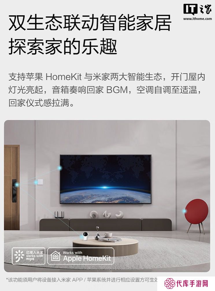 该门锁可选黑灰双色,表面使用阳极氧化工艺,配备 27 颗灯珠氛围灯,拥有“黄金波浪曲线”设计。
