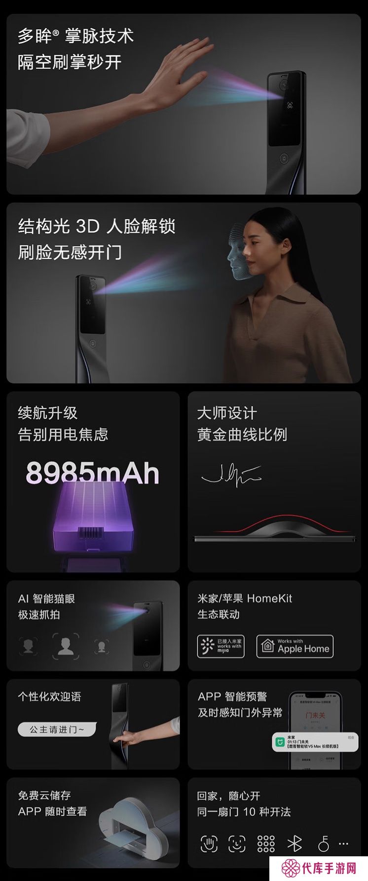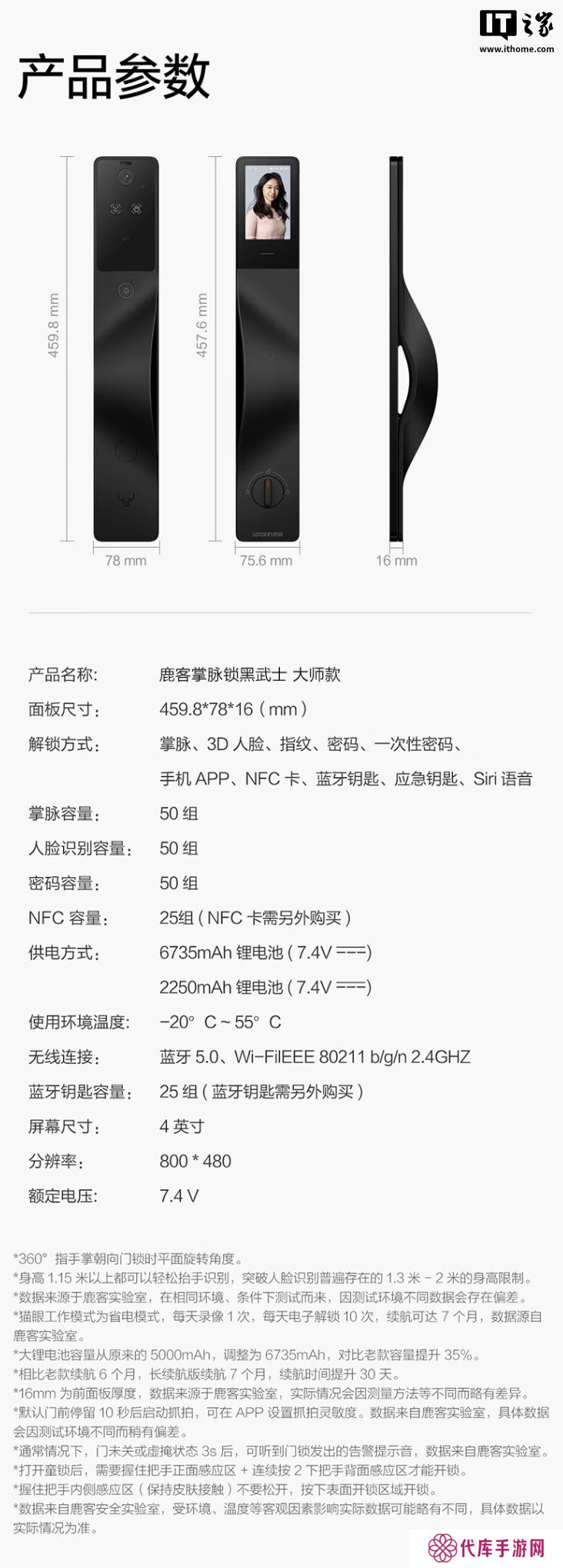 本站 3 月 29 日消息,鹿客现已在京东上架一款“鹿客掌脉锁黑武士大师款”,主打“掌静脉识别 + 人脸识别”,支持苹果HomeKit和米家App,定价为 4099元。
