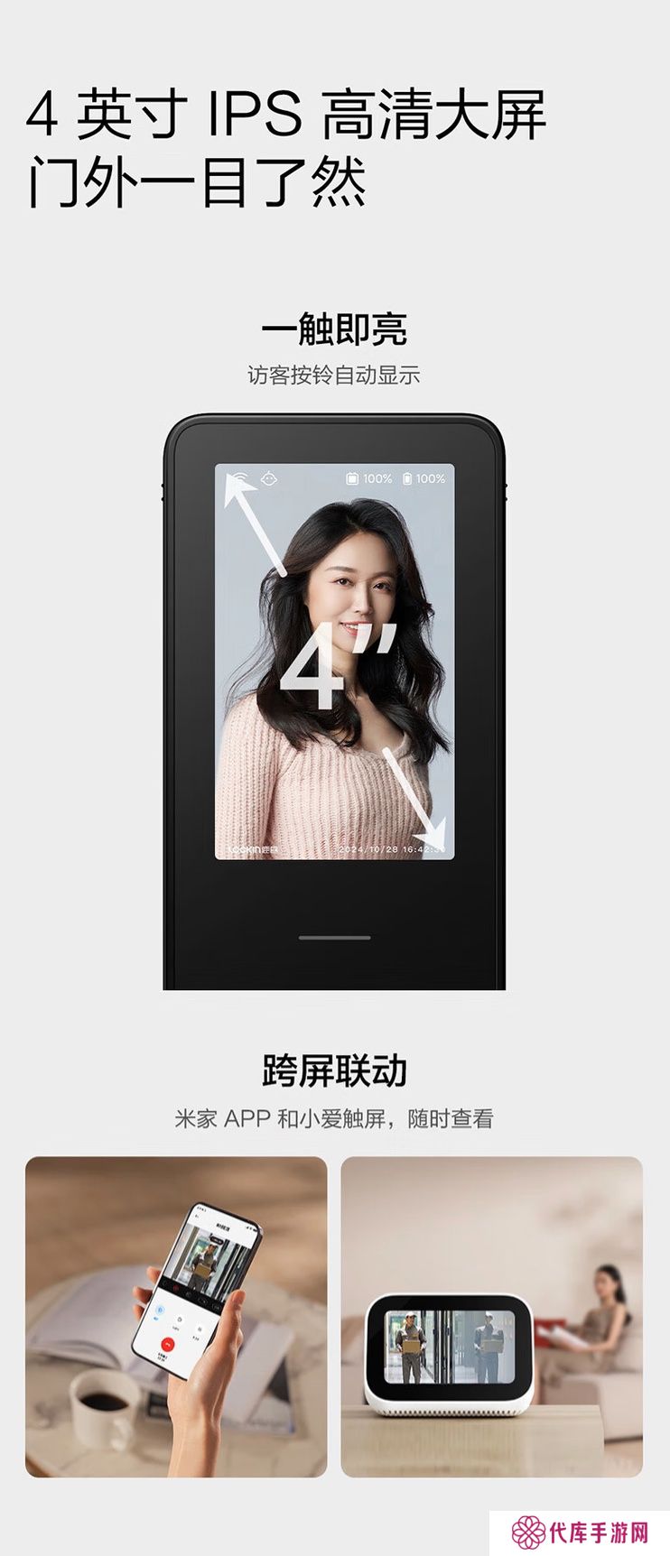 该门锁配备双2K分辨率摄像头,配备4 英寸内屏,门锁内置8985毫安时电池(6735毫安时+ 2250毫安时)。