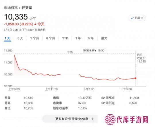 任天堂股价大跌