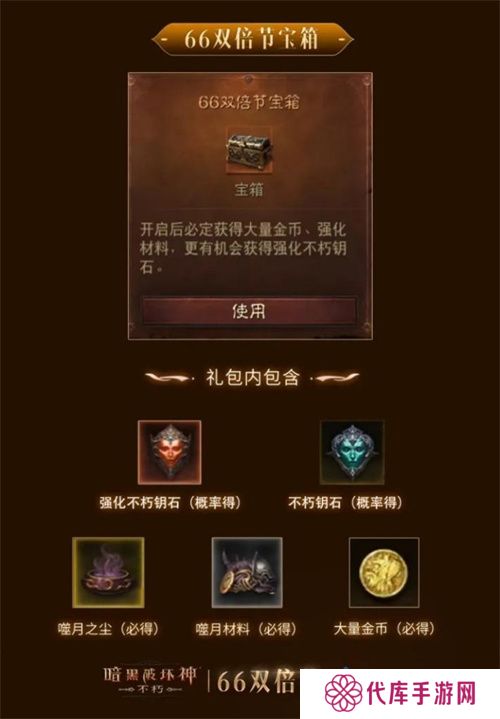 双倍精华,限时狂欢!此次双倍节,精华许愿点数仍将继续双倍,让玩家在短时间内获取更多的心愿点数,更快解锁理想的精华。同时,只要在双倍权益持续期间击败怪物就有机会获得66双倍节宝箱,开启宝箱有概率收获不朽钥石、强化不朽钥石等珍稀物品!目前66双倍节宝箱已支持自动拾取,若拾取失败玩家还可前往邮件领取,以免错失奖励。