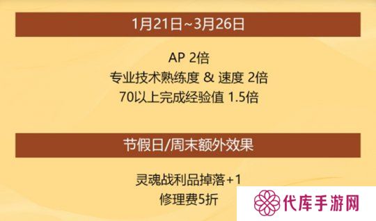 在3月11日维护前,英雄们完成Raid战役“贪婪的宴会厅”后,掉落的灵魂战利品限时+1,多一份掉落,就多一个红光的可能哦!