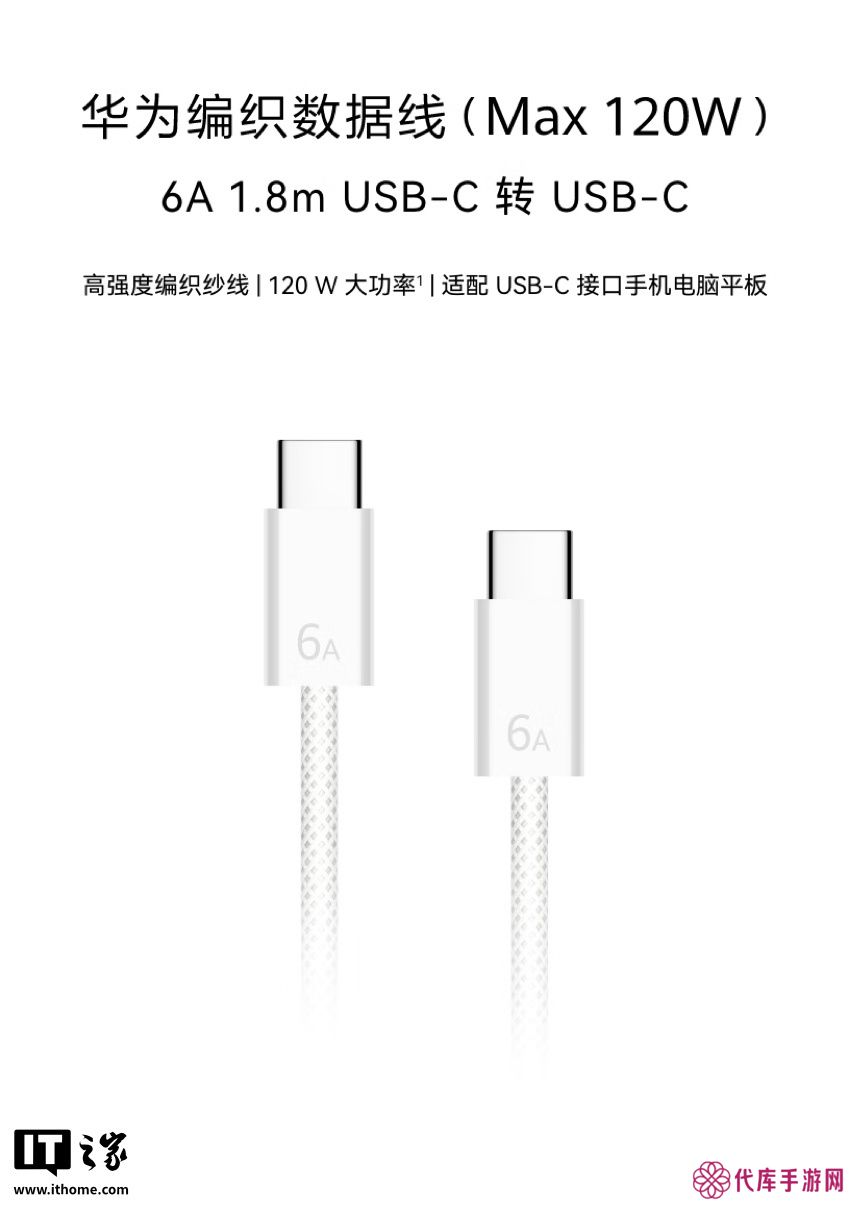 本站 3 月 29 日消息,华为现已在京东上架1.8米长的USB-C编织数据线(充电线),分为 6A(120W)及 7A(140W)版本,定价分别为99元 / 129元。