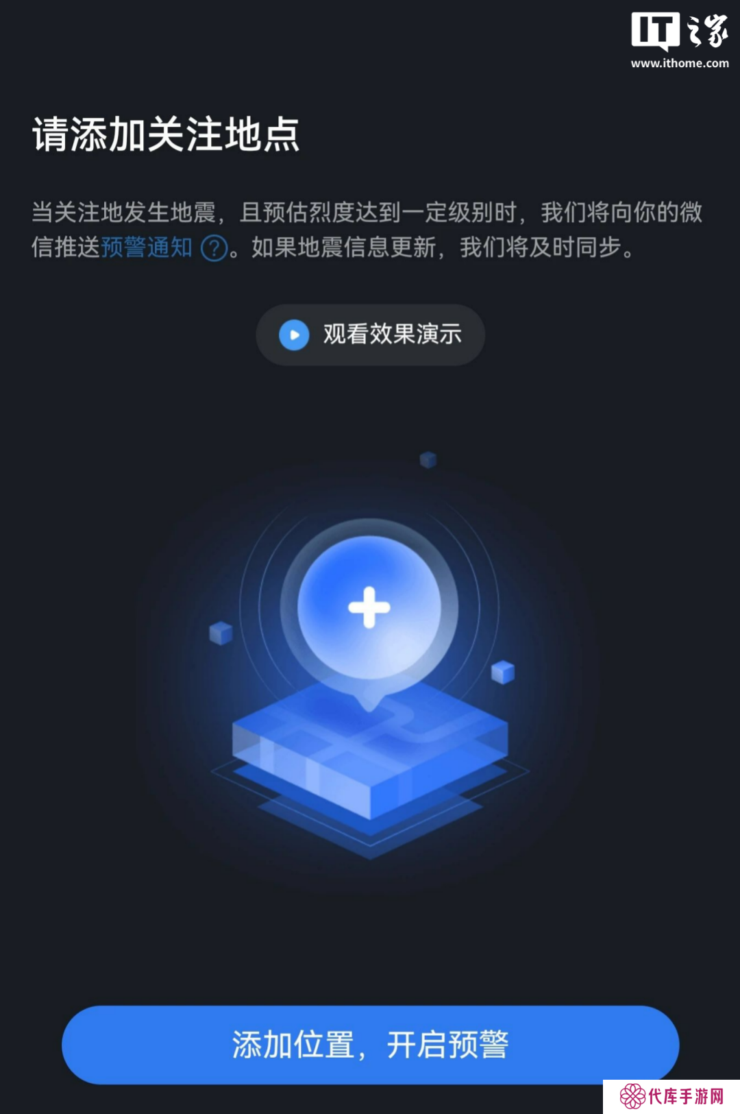 点击允许“地震预警通知”“获取位置”后,成功添加关注地,开启地震预警。