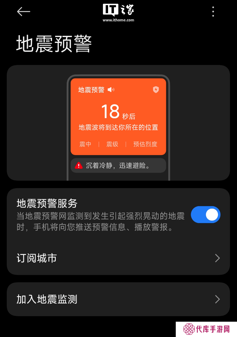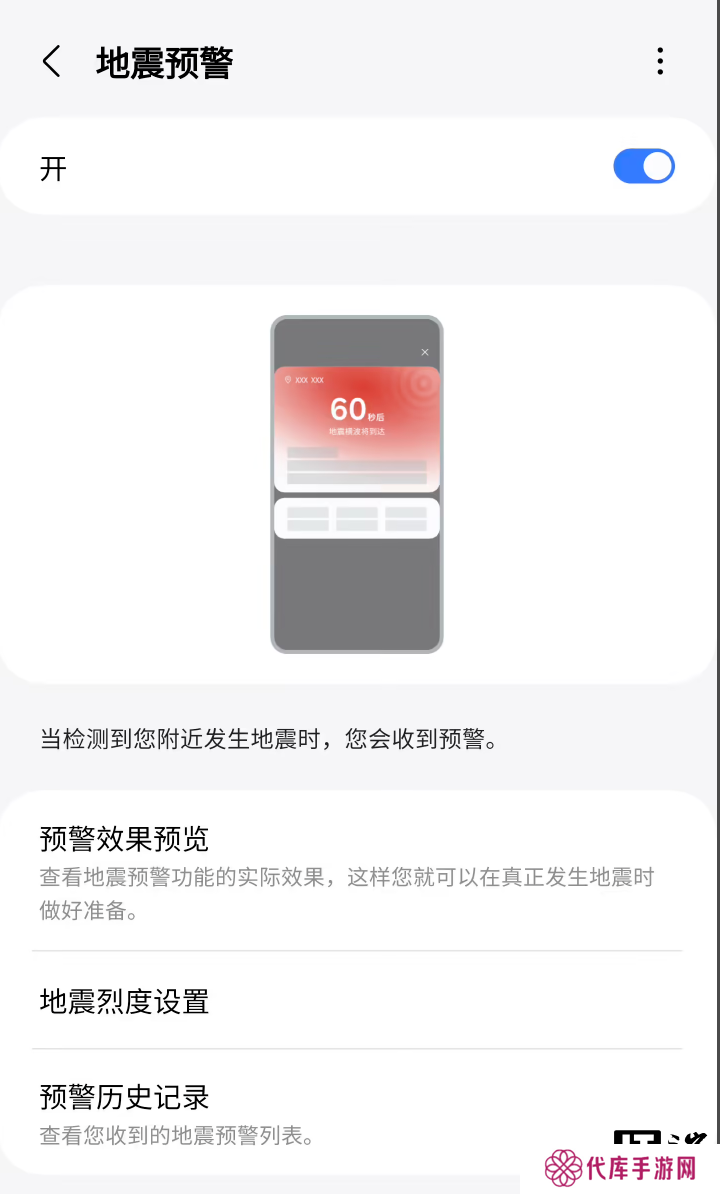 开启后当检测到地震时,会及时向用户发送地震预警通知。