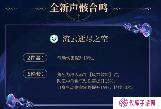 全新声骸和鸣,这次是2件套的气动+风蚀效应的,感觉应该是给风主的。